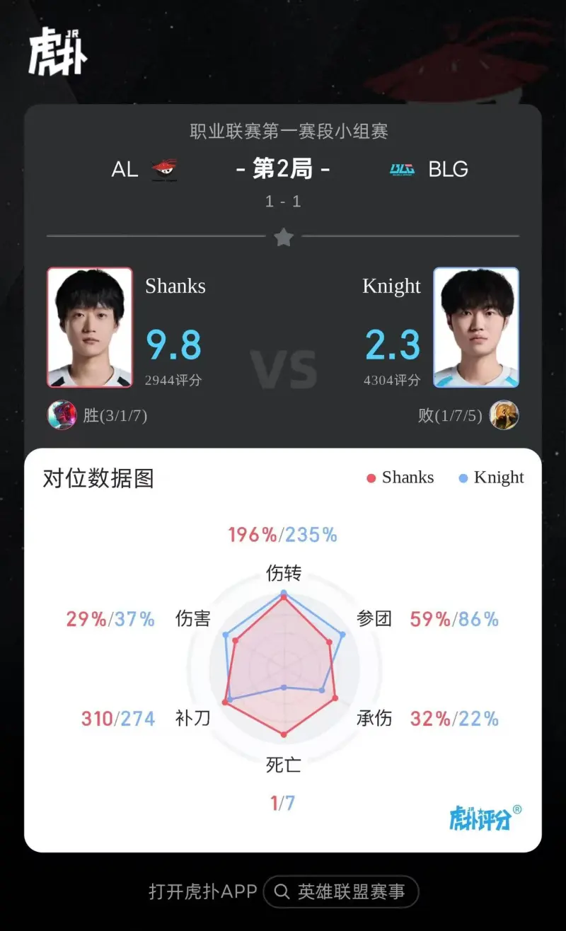 虎扑02月06日讯 GAME2:BLG蓝色方;AL红色方